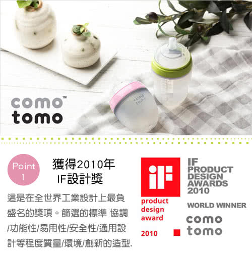 這婦幼用品不錯但是想找有沒有較便宜的,回家上網也找到 【comotomo】矽膠奶瓶二入250ML(綠色) ,
